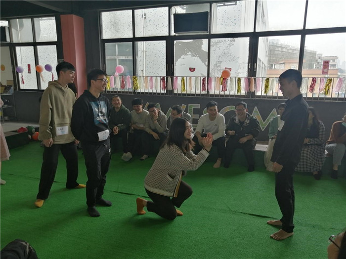 活動精心設(shè)計了自我介紹、互動游戲等豐富多彩的活動環(huán)節(jié),調(diào)動起62名青年男女們的熱情參與,在活動開始前主持人介紹了到場嘉賓、活動流程、進(jìn)行隨機(jī)分組,組成的4個隊,每名隊員依次進(jìn)行自我介紹相互認(rèn)識,推選隊長,并設(shè)計出屬于自己的隊名“乘風(fēng)破浪”、“最襯打工人”、“黑色向日葵”、“龍馬精神”,4個小隊經(jīng)過接力拼圖、T恤氹氹轉(zhuǎn)、你演我猜、射擊保齡球等符合青年人的游戲,全場氣氛一度進(jìn)入新的高潮,給青年男女們更多接觸和交流的機(jī)會,也充分展現(xiàn)青年們健康向上、富有活力的良好風(fēng)貌,“最襯打工人”隊依靠大家默契的配合取得勝利。中午以自助餐的形式大家圍坐在一起,輕松愉悅的用餐氛圍,使男女青年們很快熟絡(luò)起來,并增進(jìn)了友誼。