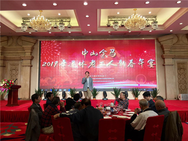 2019年2月19日,農歷元宵佳節,中山金馬公司離退休員工歡聚在新城海港酒樓,共慶新春、元宵佳節,互祝健康長壽。公司鄧志毅董事長、曾慶遠副總經理、林澤釗副總經理、楊焯彬黨支部書記等高層參加了活動,與一眾金馬老前輩、老同志們歡聚一堂,喜迎佳節。