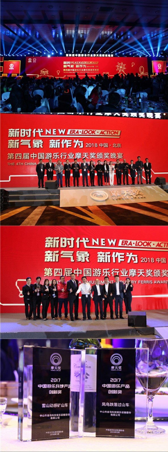 “摩天獎”是中國游樂行業第一個由全行業共同參與,對企業產品質量、品牌理念及綜合實力進行全面檢閱的獎項。在本屆“摩天獎”頒獎盛典上,中山市金馬科技娛樂設備股份有限公司為南寧萬達樂園量身定制、強勢推出的國內首臺室內速降跌落過山車“鳳鳥跌落過山車”榮獲“中國游樂產品創新獎”,全新推出的亞洲首臺4D互動礦山車“雪山動感礦山車”也獲得了“中國游樂科技產品創新獎”。兩項大獎的攬獲,再次見證了中山金馬在游樂設備研發制造上的創新驅動、標桿引領實力和作用,受到了眾媒體的高度關注和贊譽。