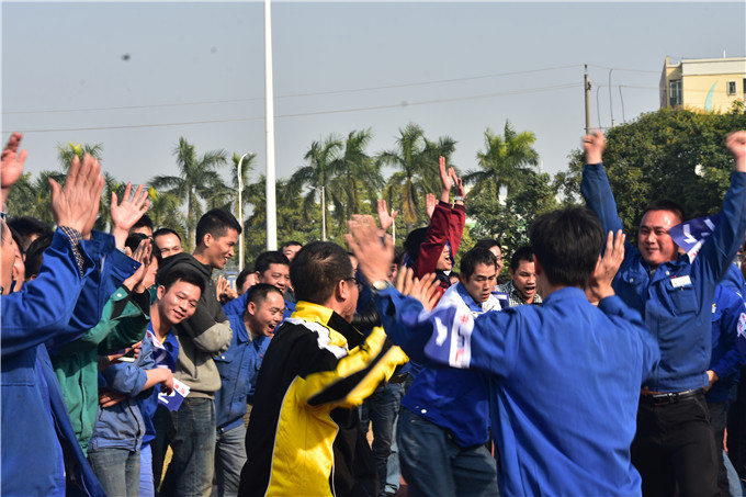 隨著一聲哨響,緊張的比賽拉開帷幕。場上選手全力以赴,場下的員工則當起了啦啦隊,加油聲、歡呼聲此起彼伏,每個人都在輕松、和諧的氛圍中享受著運動的快樂,“汗水與微笑同在,緊張和歡樂并存”成了本屆趣味運動會的真實寫照。參賽的每一個運動員每一個團隊都牽動著在場員工的心弦。同呼吸,共命運。彼此加油、歡呼、喝彩,現場歡聲笑語此起彼伏。