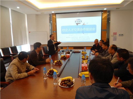會前,曾總帶領到訪貴賓一眾參觀了生產車間現場,并沿途對現場管理規定、生產工藝流程加以詳細講解,潔凈明亮的車間現場、規范有效的管理辦法給眾人留下了深刻的印象。隨后,座談會上,劉局長等人先是認真觀看了公司的特色產品及工程案例介紹。曾總、容部長也就公司發展現狀、技術隊伍建設、人才培養模式等方面進行詳細介紹,并對目前公司在招聘中的重點需求和困難進行剖析。眾人在聽了曾總與容部長的講話之后,紛紛圍繞重點專業建設、培訓項目、人才培養輸送等方面展開了討論。劉局長強調,金馬具備強勁的發展勢頭,長期吸引了桂林市諸多高校學子的求職目光。此次校企合作會議,雙方要進一步完善合作交流協調機制,充分利用好兩地就業局的橋梁作用,推進人才合作項目的有效開展,實現雙贏。陳校長也表示“學校會以原優勢技能培養專業為基礎,不斷加強對學科、專業的合理定位與建設,形成應用性技工學院特色,培養優秀技術型人才,提供高水平社會人才服務”。