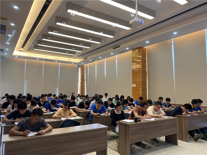 理論培訓包括:人力行政中心講授了公司的文化、規章制度,并進行了環保知識分享;宏基派出所進行了治安法制教育,提升員工法律法規意識;公司消防隊講授了消防安全的理論和自救與救援實操方法;安委會分享了安全生產案例,學習安全生產的應急救援方法;總經辦分享優秀精益提案生動地詮釋了精益生產。全體受訓人員以筆試方式通過了理論培訓考核。