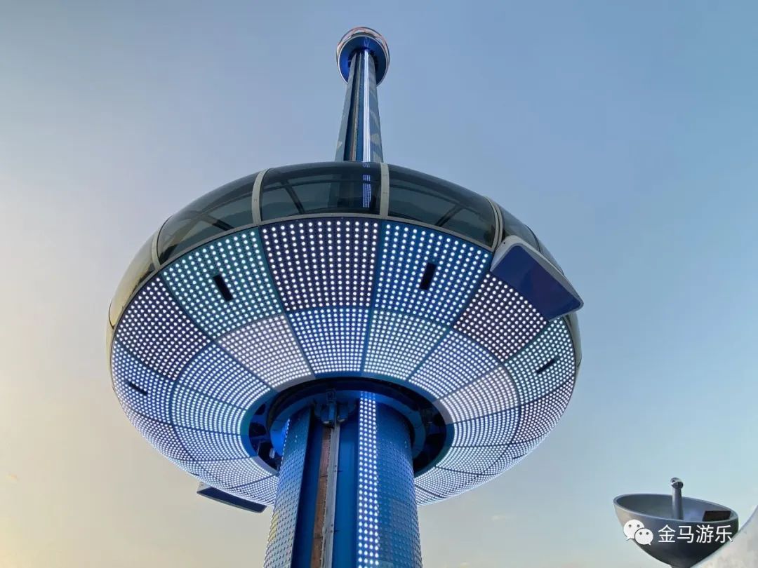 隨著“迷你世界·冒險山”的開放,深圳歡樂谷與金馬游樂攜手打造的地標(biāo)項目——全景式高空觀景塔”星空之環(huán)”亦正式亮相?!靶强罩h(huán)”豎立在冒險山山頂,有著65米高的圓柱塔體,極具未來感的艙體,夜幕中的百變燈效以及全天候360°絕美觀景享受,使其成為園區(qū)日夜閃耀的明星。