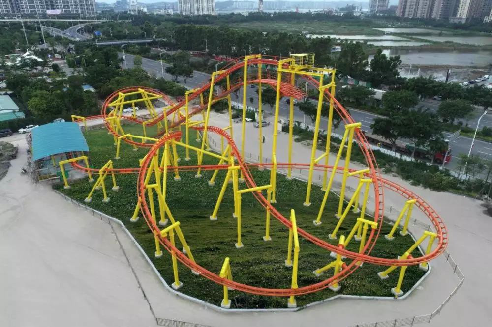XGC-16B 懸掛過山車是中山金馬全新開發的一款小型懸掛式過山車,豐富了過山車系列,在保留原有大懸掛刺激度的同時,更加注重造型美觀、軌道順滑流暢,適合年齡層次更廣,更能解決場地面積小的問題,滿足市場需求。列車由動力提升到軌道最高端后,即俯沖直下,沿軌道自由高速滑行,螺旋穿梭,風馳電掣,呼嘯而行。