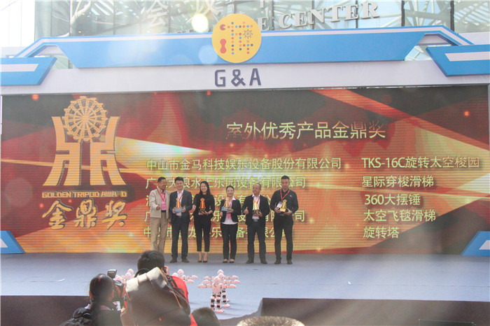 作為中國游戲游藝行業(yè)的龍頭企業(yè),中山市金馬科技娛樂設(shè)備股份有限公司對本次盛會全程關(guān)注支持,并設(shè)以恢弘的展位布置應(yīng)邀入駐參展。先是在游博會開幕典禮上,金馬公司新產(chǎn)品“TKS-16C旋轉(zhuǎn)太空梭”,以其先進(jìn)且創(chuàng)新的技術(shù)獲得“室外優(yōu)秀產(chǎn)品金鼎獎(jiǎng)”;而后迎合游博會歷年秉承的創(chuàng)新、與時(shí)俱進(jìn)理念,金馬公司在展會上展示了GJT-60A觀景塔、ZB-72A轉(zhuǎn)轉(zhuǎn)杯、3D互動軌道車等創(chuàng)新產(chǎn)品,引起眾多客商及觀眾的駐步與贊賞,也被多家新聞媒體廣為報(bào)道。