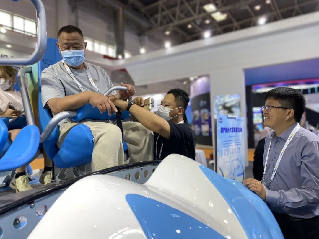 金馬文旅科技在本次展會上集中展示了飛行影院、黑暗乘騎、4D影院等多個虛擬沉浸式系列產(chǎn)品的落成案例,96座翻轉(zhuǎn)式飛行影院《飛躍泰山》、6自由度動感黑暗乘騎《盤古開天》呈現(xiàn)出的震撼效果體現(xiàn)了金馬文旅科技在沉浸式項目創(chuàng)意設(shè)計、內(nèi)容策劃及總體集成能力的跨越式進步,近兩年打造的一個又一個虛擬沉浸式高科技文旅示范標桿項目,有效引領(lǐng)了行業(yè)創(chuàng)新,助力數(shù)字沉浸式產(chǎn)品高質(zhì)量發(fā)展,得到前來觀展、交流的行業(yè)領(lǐng)導(dǎo)、專家認可與贊賞,客商合作意向不斷。