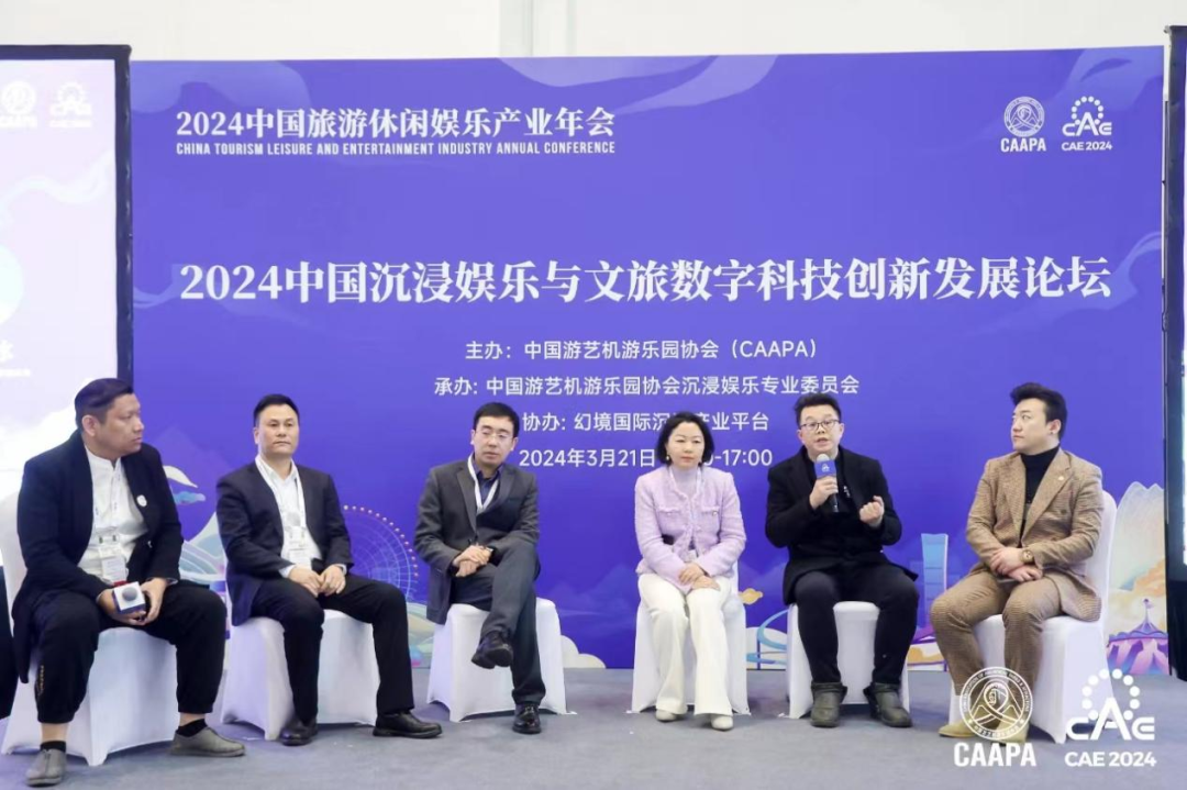 展會期間還同期舉辦了2024中國旅游休閑娛樂產業年會-2024中國沉浸娛樂與文旅數字科技創新發展論壇,公司副總經理林澤釗作為受邀嘉賓出席并參與了“沉浸產業服務供應鏈體系融合”主題圓桌討論,與業內同仁就“技術創新是如何制造體驗賣點和驅動消費”、“面對2024年行業商業變量的應對策略”等熱點話題展開探討。林澤釗副總經理表示:在虛擬沉浸式項目中,創意概念的落地能力尤為關鍵,打造高沉浸感體驗極其考驗多維一體的技術集成能力,得益于金馬游樂多年技術投入,近年多個國內首創虛擬沉浸項目順利落地,沉浸效果備受肯定與青睞;面對如今市場多元化、輕體量、快交付的需求特點,金馬游樂正通過技術平臺整合來加快創新技術成果轉化,源源不斷為市場供給新產品,引領行業向新而行。