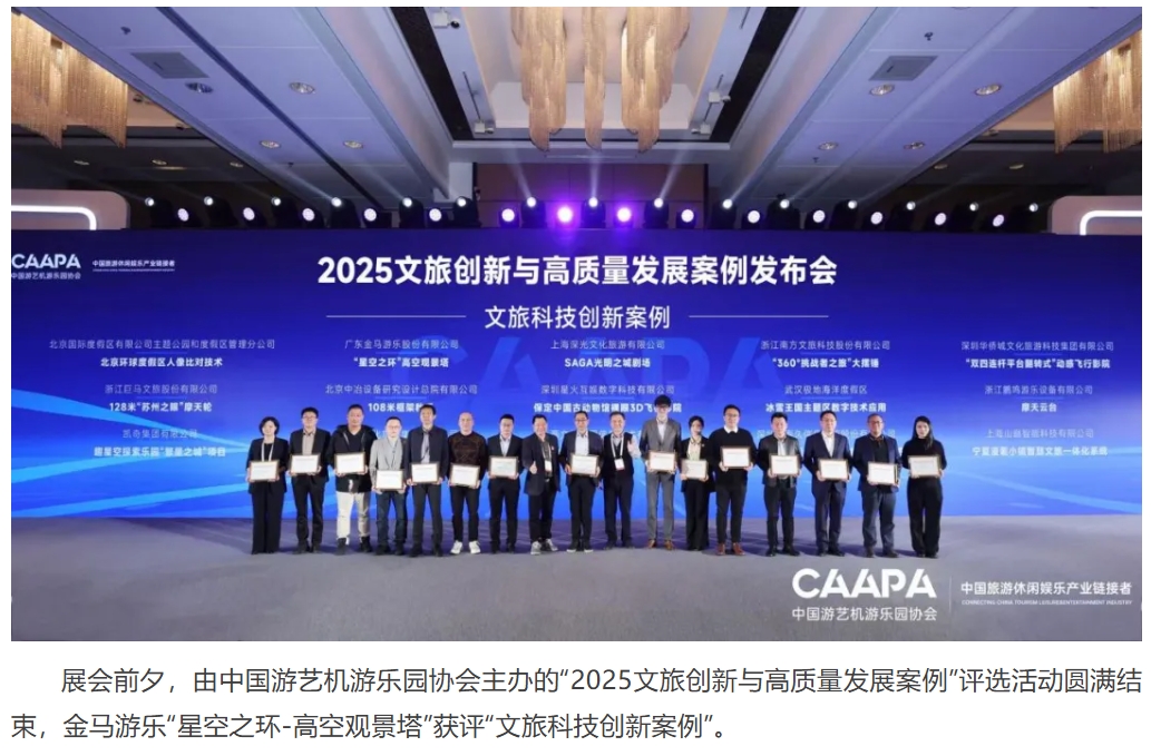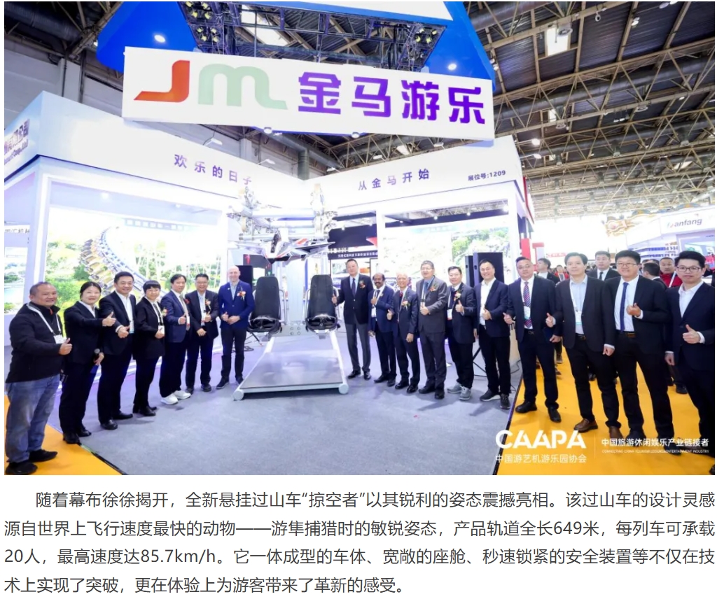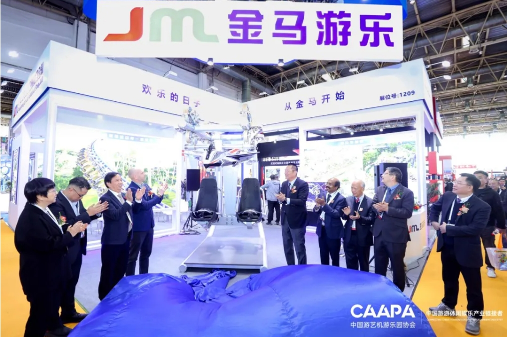 3月19日,2025 CAAPA北京展盛大開幕,展會首日,金馬游樂舉辦了主題為“革新體驗,領航未來”的新品揭幕活動,為全新懸掛過山車“掠空者”揭開神秘面紗。活動現場人頭攢動,氣氛熱烈,中國游藝機游樂園協會會長姚軍、副會長戎志剛、TEA(主題娛樂協會)董事會主席Matt Barton、印度游協會長VGP Ravidas等行業重要領導和嘉賓齊聚一堂,共同為這款過山車揭幕。他們的到來不僅為活動增添了光彩,也彰顯了金馬游樂在行業內的強大影響力。