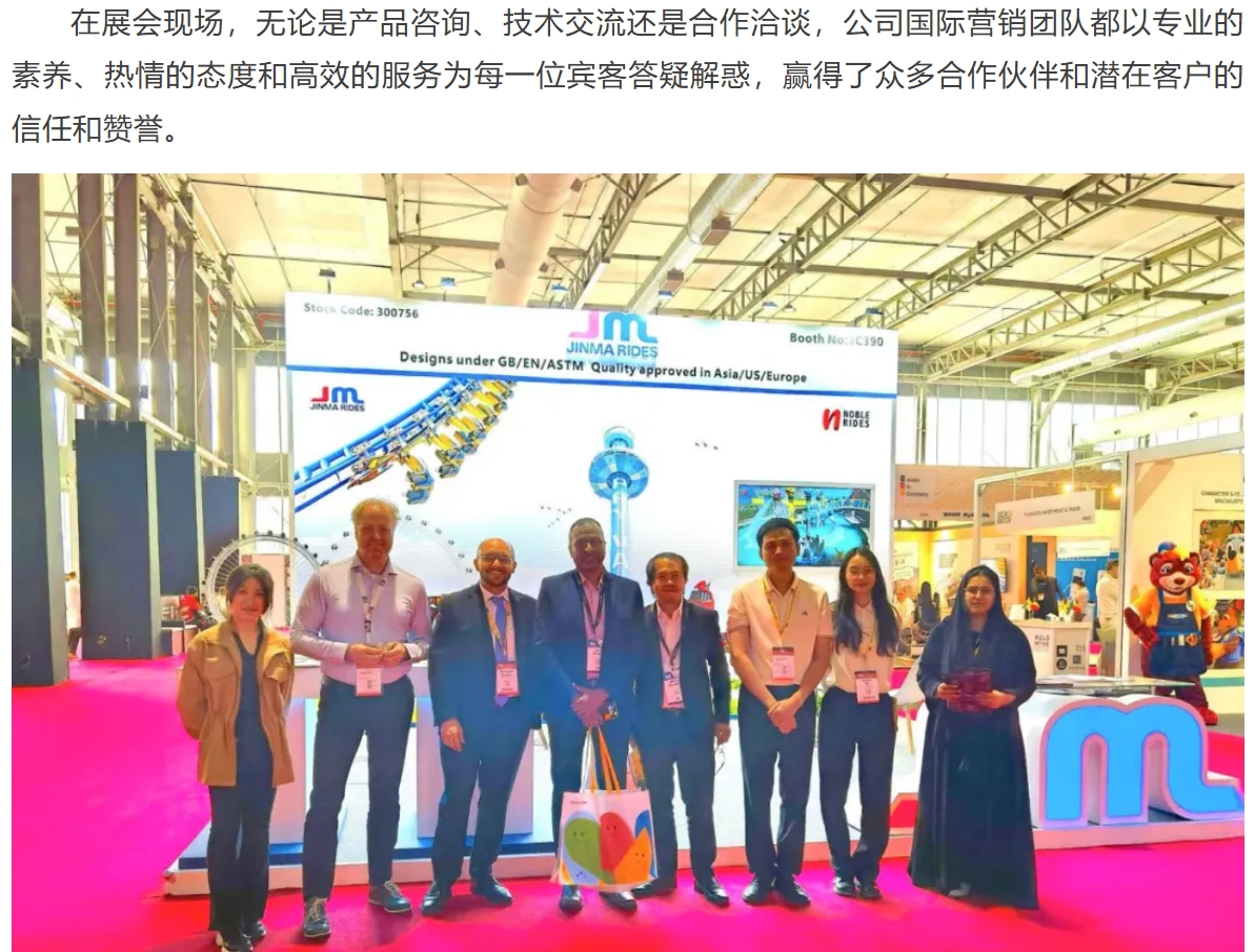 中東市場(chǎng)具有獨(dú)特文化和消費(fèi)習(xí)慣,公司將根據(jù)市場(chǎng)特點(diǎn)進(jìn)一步優(yōu)化產(chǎn)品設(shè)計(jì)和服務(wù)方案,以更加貼合當(dāng)?shù)匦枨蟮挠螛?lè)裝備產(chǎn)品和解決方案力求取得更大突破,持續(xù)深耕中東市場(chǎng)。同時(shí),公司也將以此為契機(jī),進(jìn)一步加大全球市場(chǎng)拓展力度,期待與全球客戶攜手合作,共同開創(chuàng)游樂(lè)裝備行業(yè)的美好未來(lái)。