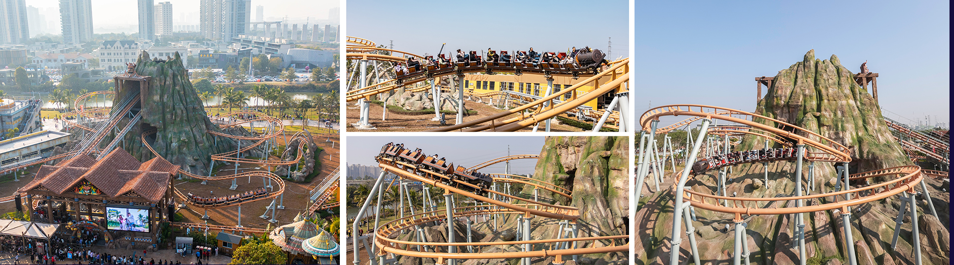 礦山車模仿古代礦山列車運(yùn)行模式,采用仿古式的火車造型,游客仿佛置身于礦山現(xiàn)場(chǎng)。全程路軌設(shè)有兩個(gè)提升段,配合先進(jìn)變軌技術(shù)、減震膠與柔和的永磁制動(dòng),為乘客乘坐帶來舒適靜謐的體驗(yàn)。同時(shí)獨(dú)特的壓腹式壓杠結(jié)構(gòu),確保包括?度1.1m以上兒童可被有效束縛,增大游客受眾范圍。