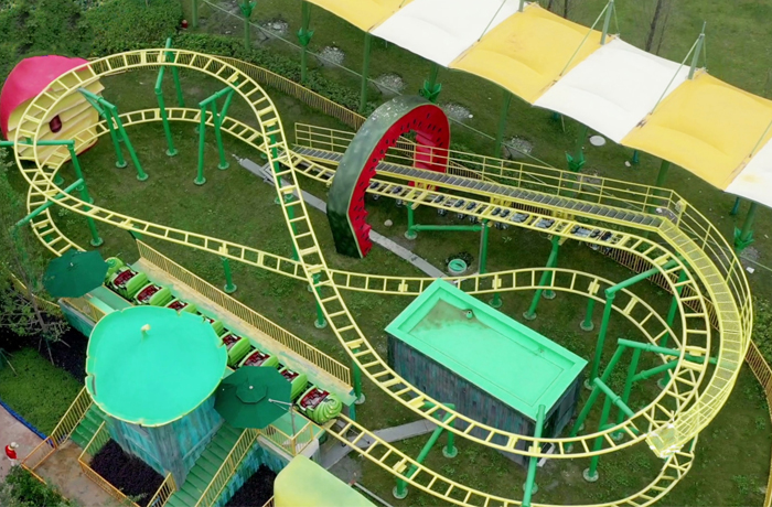 一種戶外休閑娛樂設備,列車由摩擦輪驅動提升到軌道最高端后,立即轉為沿軌道自由高速滑行,時而俯沖直下,時而電掣穿梭,呼嘯而行。游客舒適地穩坐于座椅上,盡情地領略失重和離心的驚險刺激的感覺,是游客的摯愛項目。