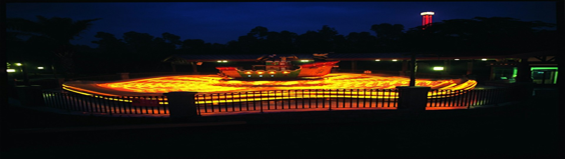 轉(zhuǎn)臂帶動船體旋轉(zhuǎn),船體沿著落差達(dá)到0.8米的路軌上下升降,快速旋轉(zhuǎn)當(dāng)中,游客交替感受到上升超重和下降失重,猶如大海行船,波濤洶涌,驚心動魄。配上美麗動感的燈飾,大型逼真的艦艇船模,氣勢磅薄的場面,是最吸引人的游藝機(jī)之一。