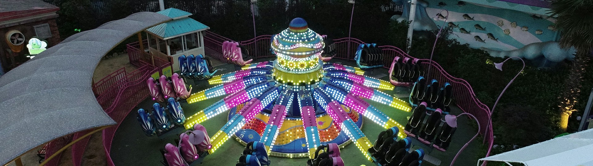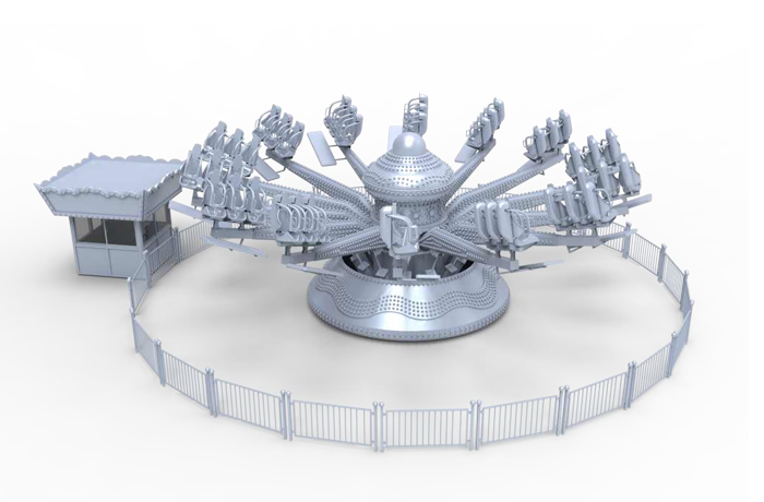 彈跳機中軸為中心帶動周圍十四個座艙繞豎直中軸旋轉,同時座艙伴隨著音樂進行高低、快慢不同的跳躍式運動。使乘客在過程中體驗到旋轉加跳躍的樂趣。