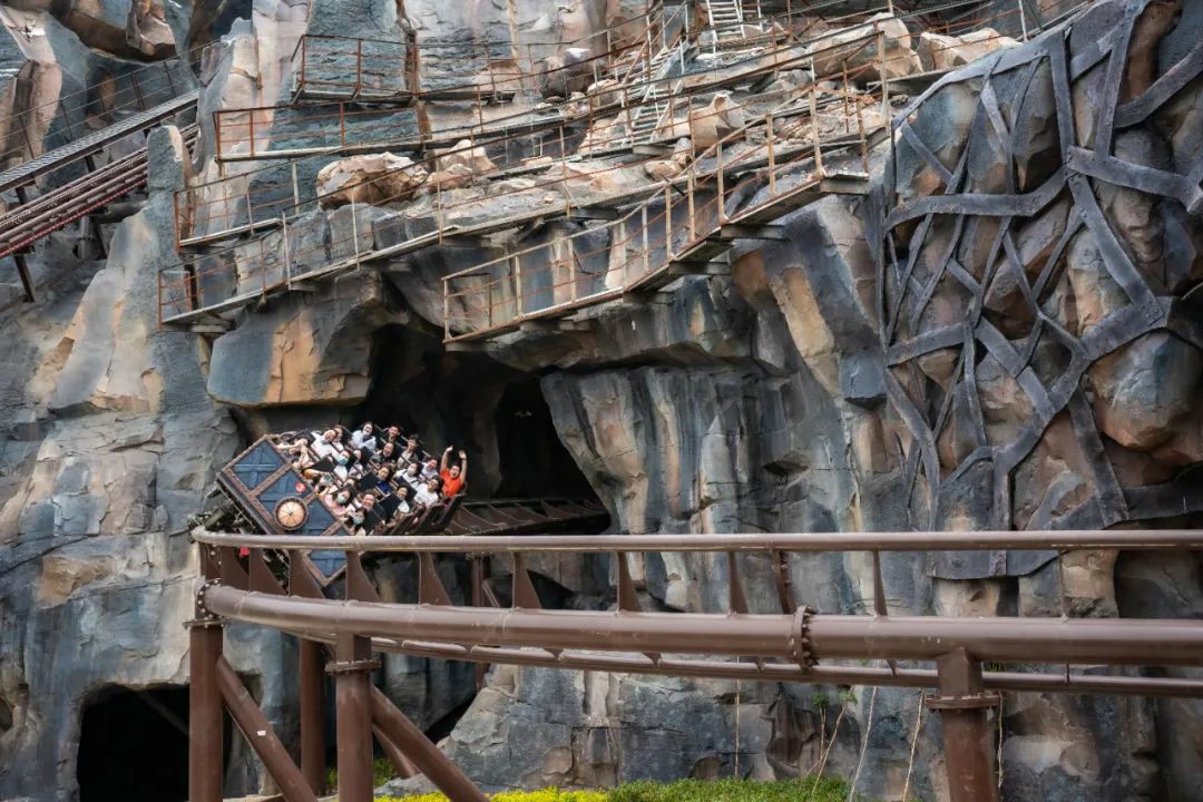 進入神秘莫測異域風情的藏區幻境,乘坐中國首座雪山主題過山車“雪山飛車”。隨著雪怪一聲怒吼,在曲折的礦山隧道里毫無預兆的轉軌、換軌、背沖,收獲藏地飛馳的驚奇體驗。